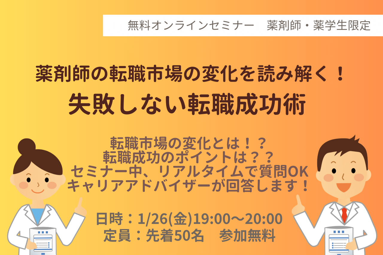 終了しました)無料オンラインセミナー『薬剤師の転職市場の変化を読み解く!失敗しない転職成功術』