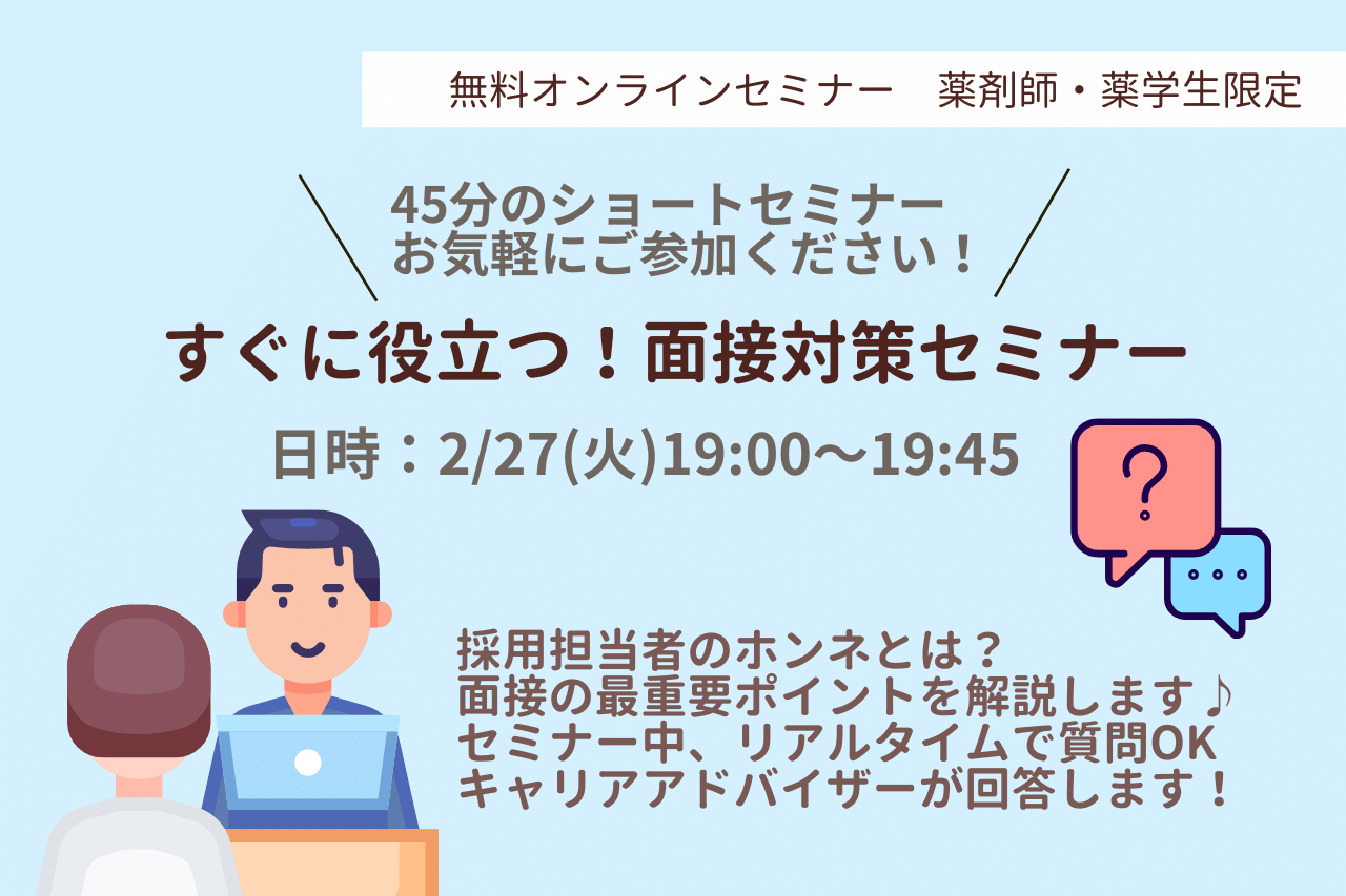 終了しました)【2/27開催】無料オンラインセミナー『すぐに役立つ!面接対策セミナー』