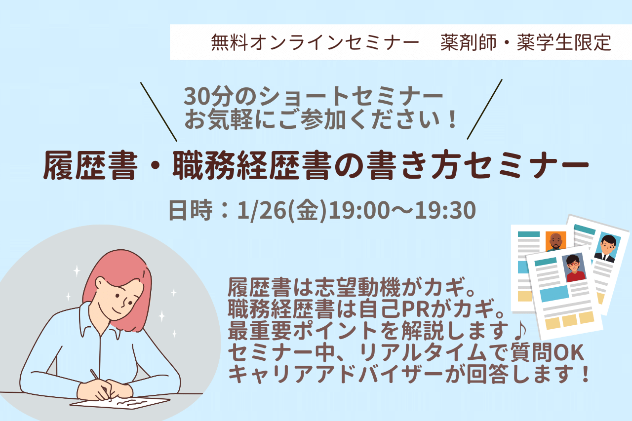 終了しました)【2/6開催】無料オンラインセミナー『薬剤師の転職市場の変化をキャリアアドバイザーが解説します』