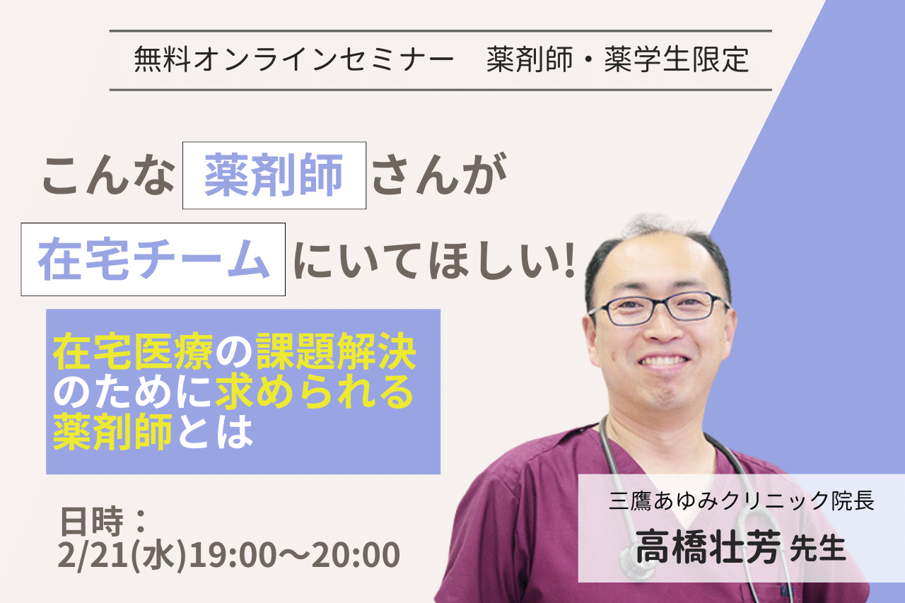 終了しました) 無料オンラインセミナー『こんな薬剤師さんが在宅チームにいてほしい! ~在宅医療の課題解決のために求められる薬剤師とは~』
