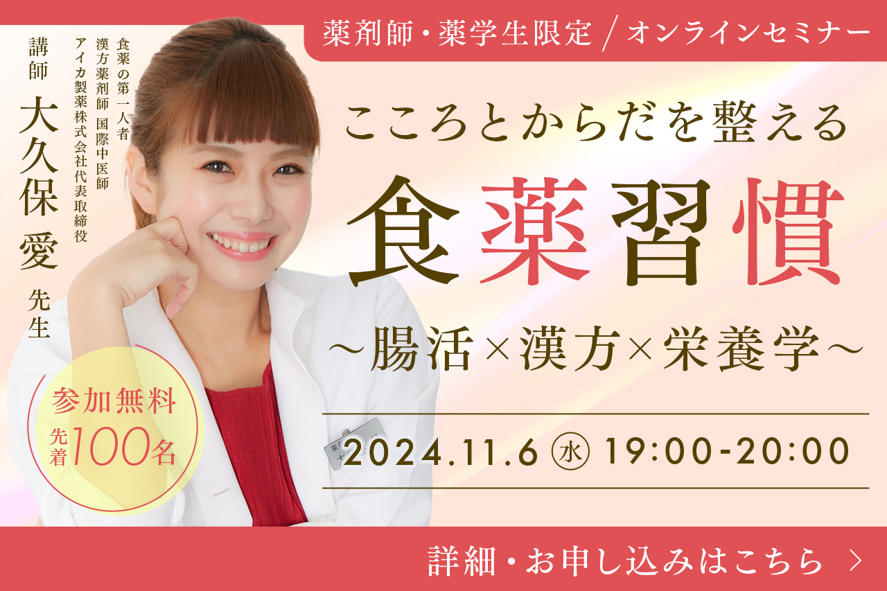 終了しました)【11/6開催】無料オンラインセミナー『こころとからだを整える食薬習慣~腸活×漢方×栄養学~』