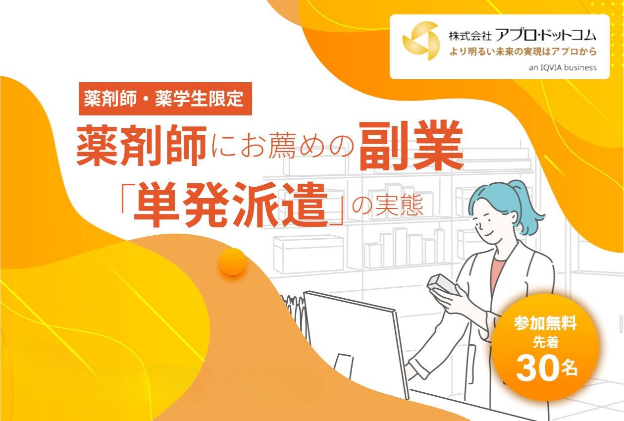 終了しました)【11/13開催】無料オンライン相談会『薬剤師にお薦めの副業「単発派遣」の実際』