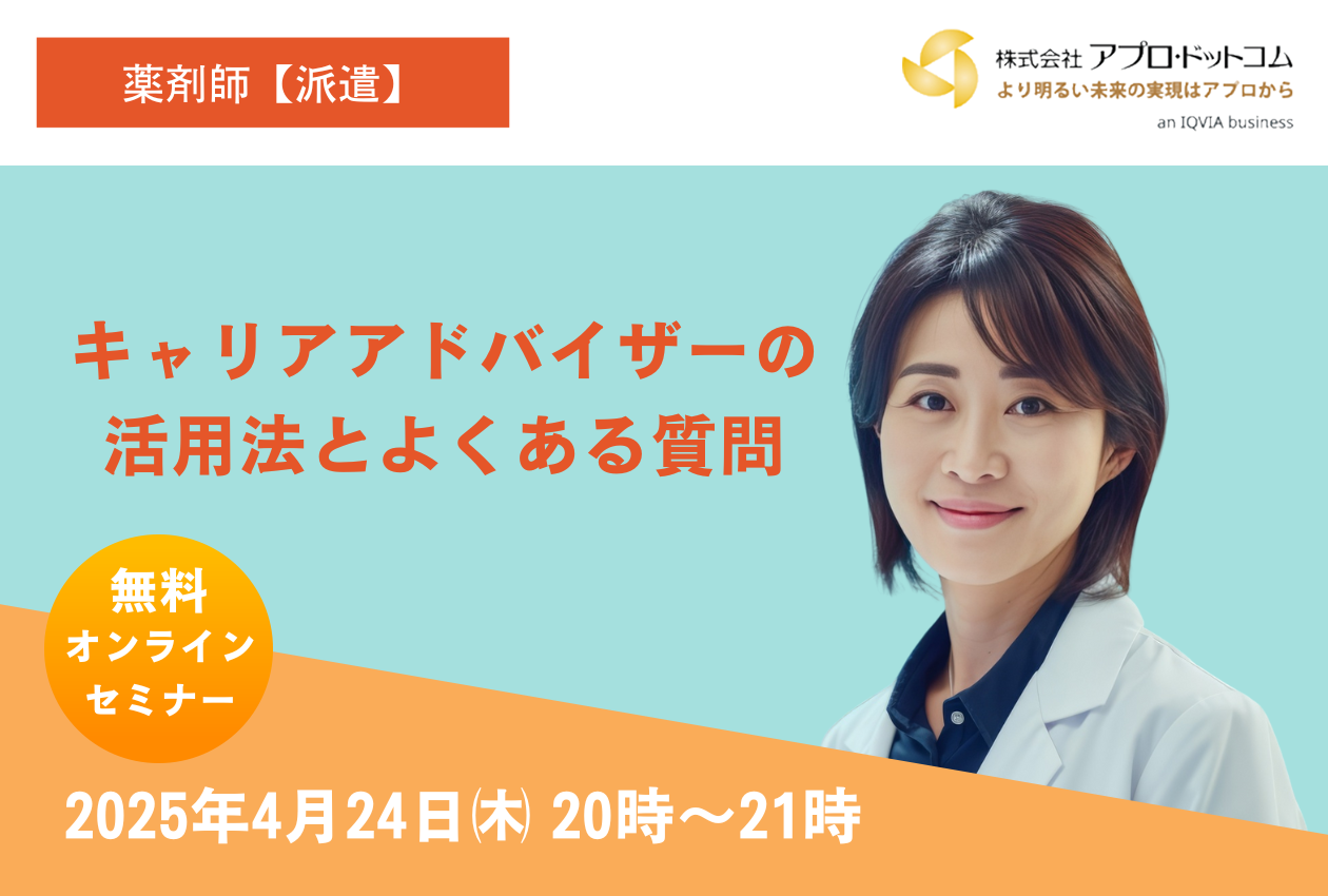 終了しました)【4/24開催】無料オンラインセミナー『薬剤師【派遣】キャリアアドバイザーの活用法とよくある質問』