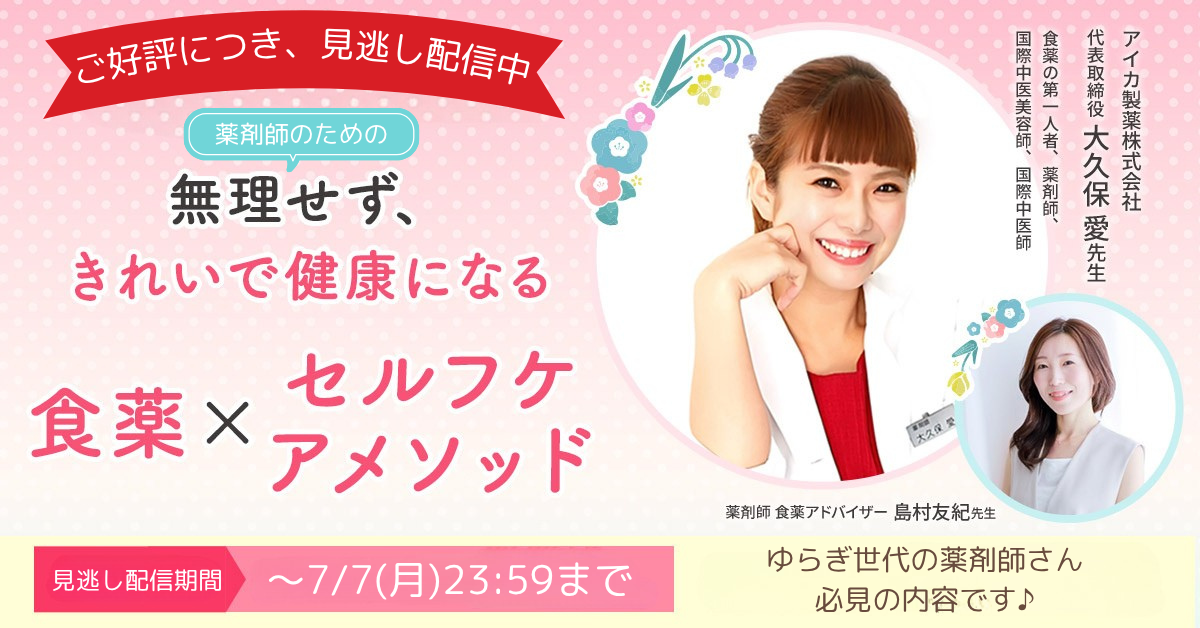 終了しました)【見逃し配信中】薬剤師のための「無理せず、きれいで健康になる 食薬×セルフケアメソッド」