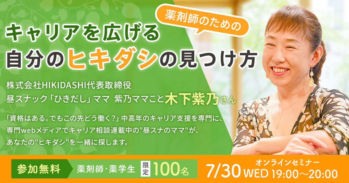 終了しました)【7/30開催】薬剤師のためのキャリアを広げる自分のヒキダシの見つけ方