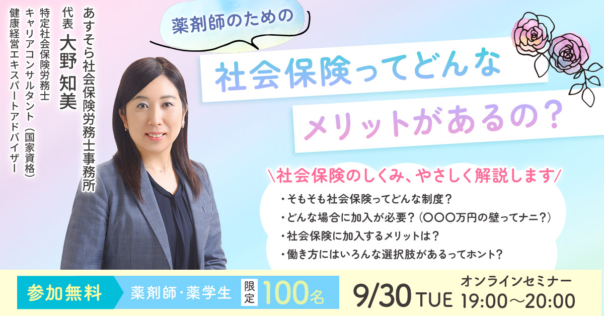 終了しました)【9/30開催】”薬剤師のための”社会保険ってどんなメリットがあるの? |webセミナー