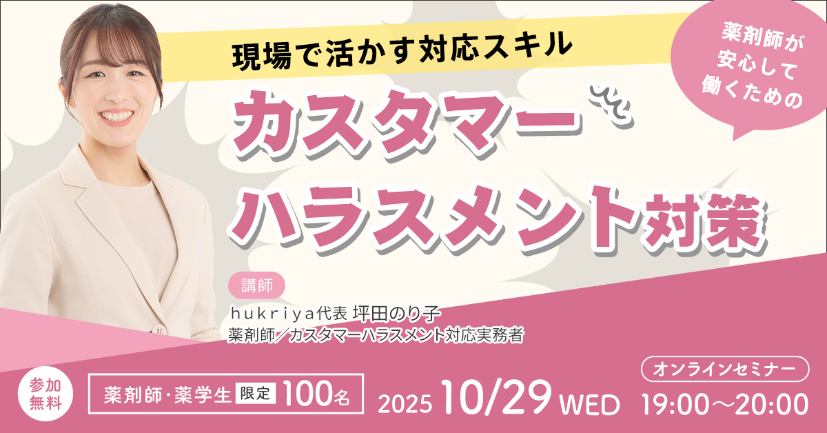終了しました)【10/29開催】薬剤師が安心して働くためのカスタマーハラスメント対策