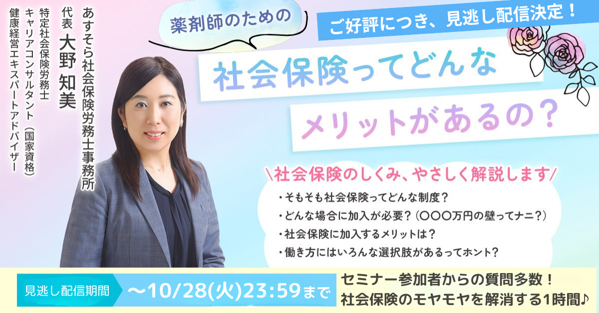 終了しました)【見逃し配信中~10/28まで】”薬剤師のための”社会保険ってどんなメリットがあるの?