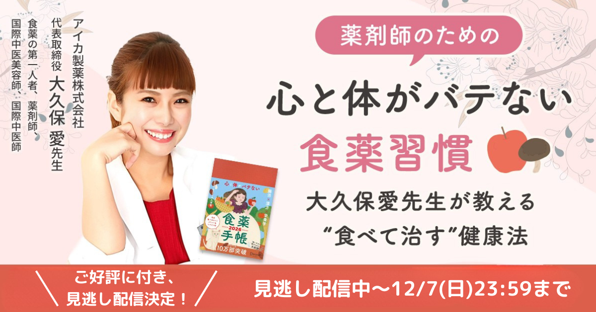 終了しました)【見逃し配信中~12/7まで】薬剤師のための心と体がバテない食薬習慣|オンラインセミナー