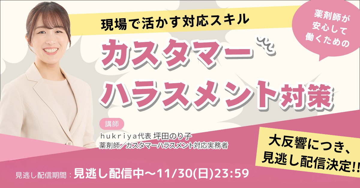 終了しました)【見逃し配信中~11/30まで】薬剤師が安心して働くためのカスタマーハラスメント対策