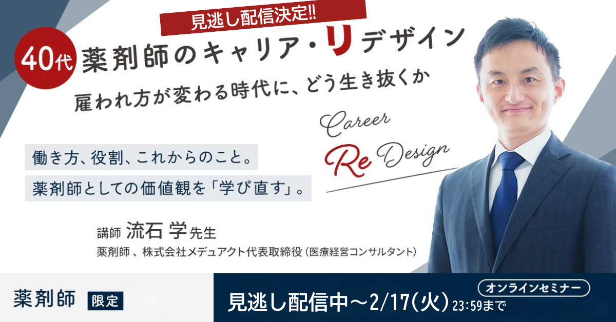 終了しました)【見逃し配信中~2/17まで】40代薬剤師のキャリア・リデザイン-雇われ方が変わる時代に、どう生き抜くか-